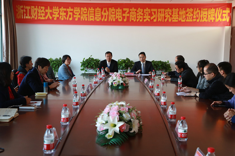 王枫铭局长在仪式上指出:针对海宁市经济发展特别是电子商务发展的需要,借助东方学院现有电子商务方面的优势,结合海宁发展机遇和产业特色,打造这样一个电商研究平台,研究海宁企业电子商务发展中的难点、培育电子商务人才、也为学生提供实习实训基地具有积极的作用。