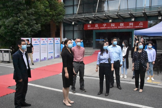 学校领导们来到迎新现场,检查指导我院对于迎接新生的场景布置,了解我院的布置情况以及迎接新生工作的大致情况,对新生的到来表示热烈欢迎,相信同学们也深深感受到了我院领导对于新生的重视与关心,让同学们都倍感温暖,增进了师生间的情谊。