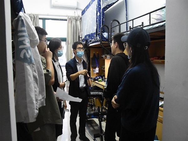 随后,我院领导费松天老师和新生辅导员陈婷婷老师一行人走访学生寝室,亲切询问新生适应情况,与新生们亲切交谈,为同学们解答生活和学习上的困惑,给予了同学们大学四年生活学习的良好建议,大家都沉浸在热烈的交谈氛围中,对未来充满了期许和美好愿景。