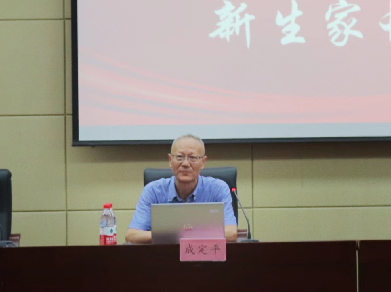 会上,成定平老师代表我院对各位家长及新生表示诚挚欢迎和热烈祝贺。他从信息学院的教师队伍、师资力量、专业现状(特色培养方向与人才培养计划)等方面系统全面地介绍了学生培养计划,详尽阐释了家长关心的学分、转专业等相关政策和毕业生的就业情况。同时也督促学生在升入大学之后要好好学习提高自己,为自己未来进入社会的第一次选拔学好专业、奠定扎实的基础,跨入更高的领域。成定平老师引用总书记所说的“系好第一颗纽扣”激励学生,希望新生们能够做好规划、知难而进、快乐成长,做好人、做有用人、做成功人。