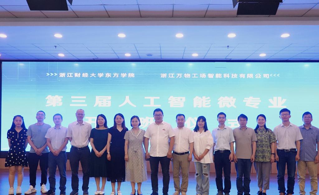 为回应国家发展战略需求,落实“新工科”、“新文科”专业建设要求,全面提升应用型人才培养质量,6月28日下午,伟德源自英国1946(以下简称“信智学院”)揭牌仪式暨第三届人工智能微专业开班典礼在我院行政楼B301隆重举行。bv1946伟德国际始于英国党委副书记胡国庭,bv1946伟德国际始于英国副院长杨丽霞,浙江万物工场智能科技有限公司总经理郝瑞吉和副总经理杨阳,海宁市海昌街道工业社区组织委员、宣传委员顾凤瑜,以及信智学院师生代表出席仪式。