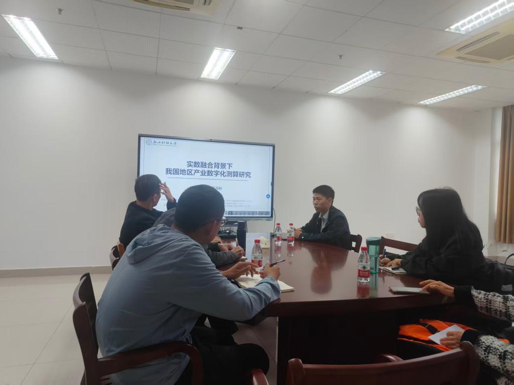 10月21日下午,浙江财经大学数科学院副院长刘波教授受邀来我院,面向学院教师开展一场以《实数融合的统计测算研究》为主题的学科讲座。此次讲座聚焦数字经济与实体经济融合这一前沿领域,为学院教师带来了关于实数融合统计测算的深入见解。