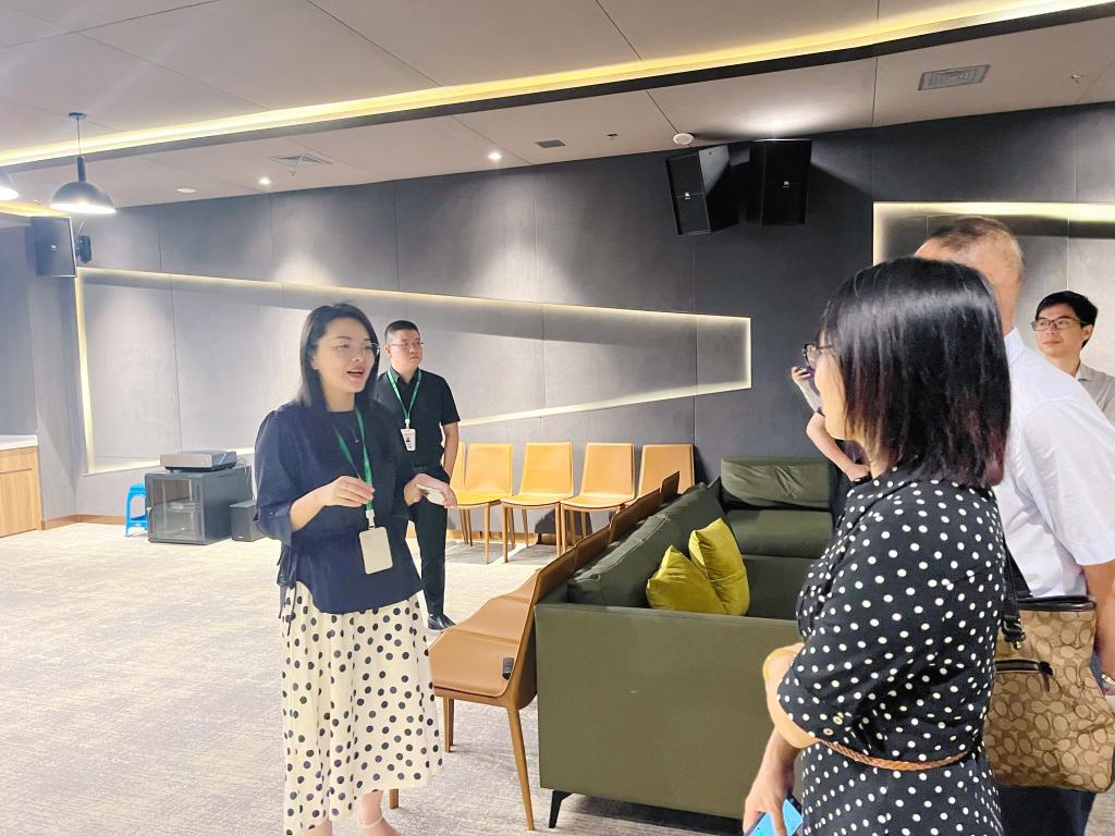 嘉兴泰格数据是泰格医药在数据管理和统计分析领域的全资子公司,主要业务模块为电子化数据管理和生物统计分析。林香娥书记一行参观了泰格嘉兴数据中心园区,由工作人员分批带领大家参观各工作区和休息区,切实体验了嘉兴泰格的日常工作生活状态与环境氛围。陈小玲介绍了上市企业泰格医药基本情况、成长与发展、六大核心业务、典型项目、合作伙伴等。