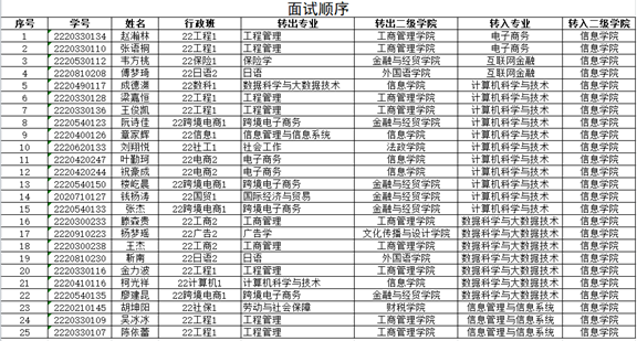 信息学院转专业工作领导小组对转专业学生进行综合测评,小组成员投票表决,票数超过半数的学生方可转入相关专业学习。所有拟同意转专业学生名单,经信息学院签署意见后,将相关材料送交教务管理部审核。