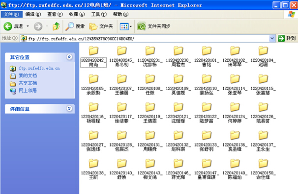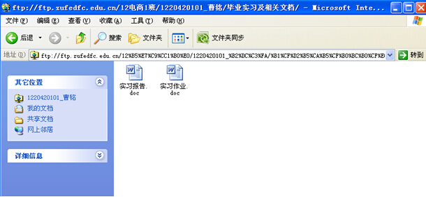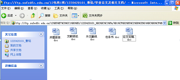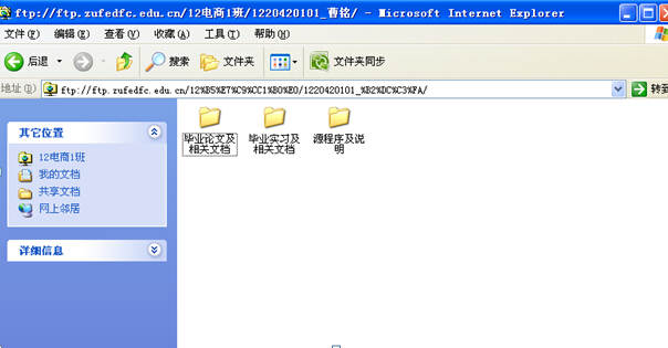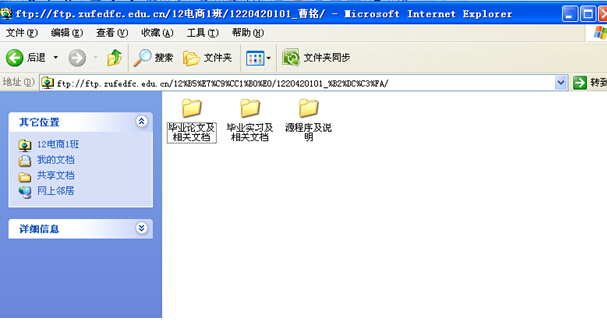 2、指导老师检查:服务器地址:ftp://ftp.zufedfc.edu.cn(校内),用户名密码另行通知