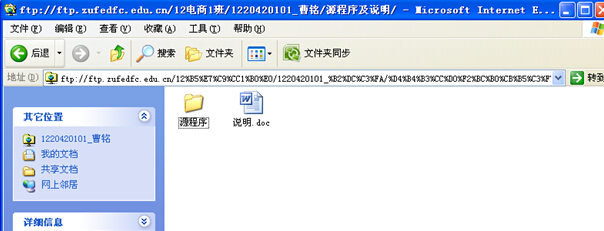 1、采用FTP上传:服务器地址:ftp://ftp.zufedfc.edu.cn(校内),用户名:xinxi_stu 密码:xinxi_stu。FTP服务器上相关目录已经建立,请各位同学严格按照文档目录结构上传。