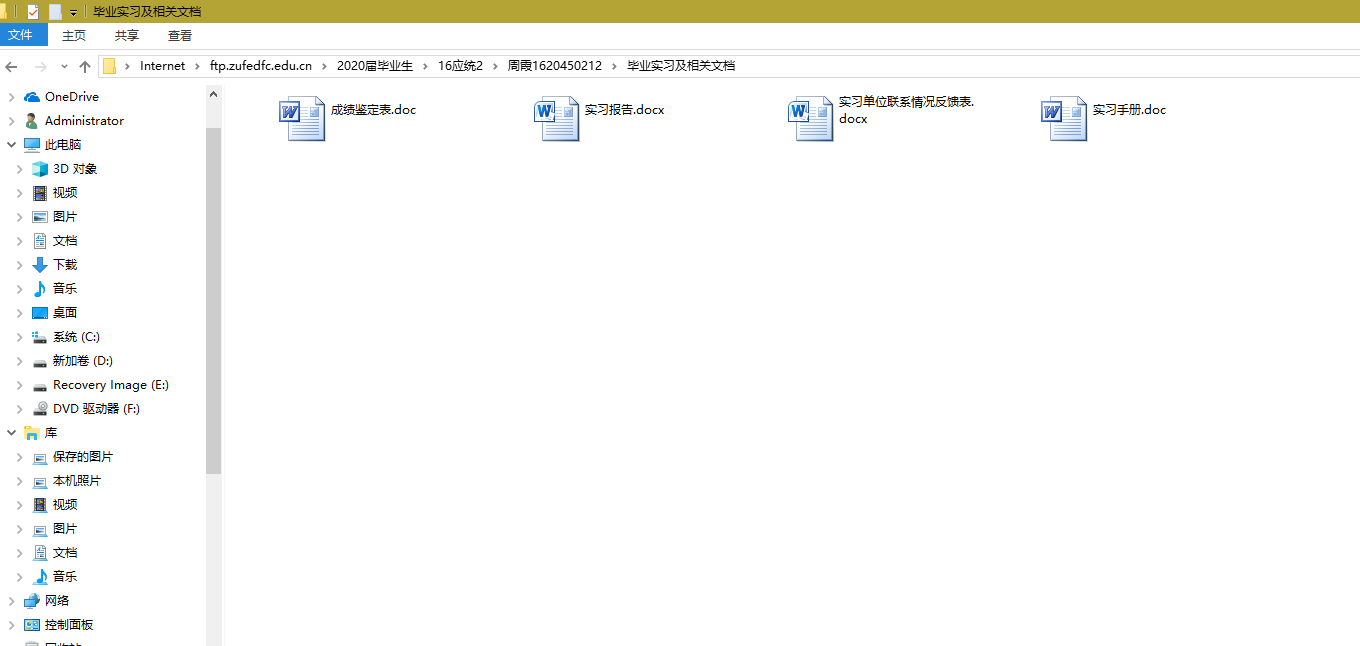 2、指导老师检查:服务器地址:ftp://ftp.zufedfc.edu.cn(校内),用户名密码另行通知