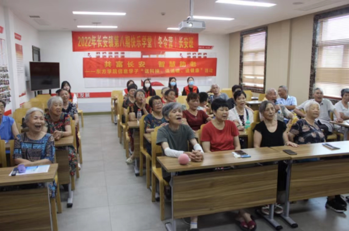 实践后期,为了丰富老年人的精神文化需求,实践团在长安镇党群服务中心开展了一场“送科技、送温暖、送健康”活动。