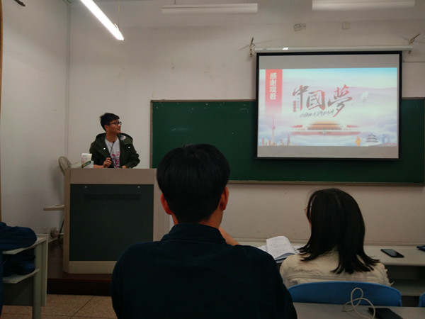随后由党员分享自己在观看影片后的感想。第一党支部的程宇同志说:“作为班级班长,以及信息分院党员服务中心的一名干事,在自己学习党的十九大精神的同时,还要向班级和身边的同学贯彻党的十九大精神,让同学们深刻体会到党和国家在过去几年的发展和进步”;第三党支部蓝天同志表态:“作为当代大学生,作为一位中共预备党员,努力践行“四讲四有标准,进一步增强‘四个意识’,坚定‘四个自信’,在学习工作与生活中发挥先锋模范作用”。