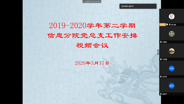 3月17日下午,信息分院党总支通过腾讯视频会议召开了新学期党建工作视频会议,会议由成定平主持,全体党总支委员参加了会议。