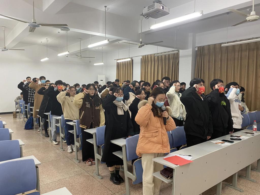 会议严格按照党组织接受预备党员程序,大会开始时大家逐一宣读《入党志愿书》,并向党组织说明有关问题,随后入党介绍人同志向大会介绍其主要政治思想、学习、工作以及生活等情况,与会党员对发展对象提问关于党章的一些基本问题。最终大会认为,13名发展对象基本符合转预备条件,经与会正式党员投票表决,大会一致同意接收汤妤、袁泽科等13名发展对象成为预备党员,在会议的结尾,李秋晴老师对于新发展的预备党员提出了殷切的希望,和深刻的教诲。