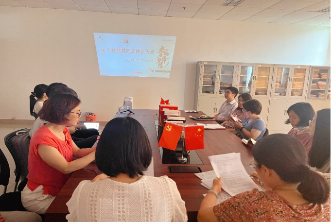 两位联系人分别结合日常工作,全面介绍了林雅晨同志的各项情况。费松天同志表示林雅晨同志在党员预备期期间,积极主动的向党组织靠拢,按时参加党组织的各类活动,积极主动向党组织定期汇报思想,广泛听取党内外群众的意见,入党动机进一步端正,不断改正自身的不足,平时不断加强政治理论学习,共产主义奋斗精神坚定。在教师日常工作上广受好评,业绩良好。综上所述,林雅晨同志符合一名正式党员的标准。经正式党员的投票,全票通过同意预备党员林雅晨同志转为正式党员。